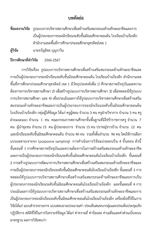 รูปแบบการบริหารสถานศึกษาเพื่ อสร้างเสริมสมรรถนะด้านทั กษะอาชีพ