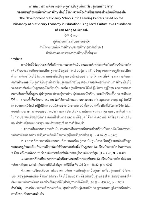 ปรัชญาของเศรษฐกิจพอเพียงด้านการศึกษาโดยใช้วัฒนธรรมท้องถิ่น