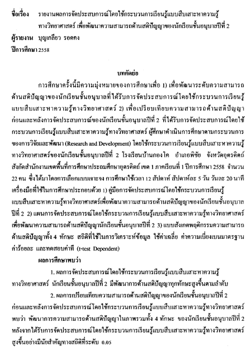 รายงานผลการจัดประสบการณ์โดยใช้กระบวนการเรียนรู้แบบสืบเสาะหาความรู้